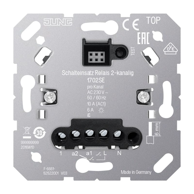 für Einsätze Jalousie Art.-Nrn.: 1730 JE und 1731 JE für Einsätze Licht Art.-Nrn.: 1701 SE, 1701 PSE, 1702 SE, 1704 ESE, 1710 DE, 1711 DE, 1712 DE, 1713 DSTE, 1723 NE Bestimmungsgemäßer Gebrauch Manuelles und automatisches Bedienen von z. B. Jalousien, Rollladen, Markisen, Beleuchtung oder Lüftern Drahtlose Verknüpfung mit Geräten des JUNG HOME Systems Betrieb mit Systemeinsatz zum Schalten, Dimmen, Jalousie oder Nebenstelle 3-Draht Produkteigenschaften Inbetriebnahme und Bedienung über JUNG HOME App mit mobilem Endgerät (Smartphone oder Tablet) über Bluetooth Bedienung oben, unten und vollflächig mit bis zu 2 verknüpften Funktionen pro Wippe Tasten nutzen zur Steuerung von Bereichen (Gruppen) oder um Szenen aufzurufen Tasten nutzen, um drahtlos verknüpfte JUNG HOME Geräte zu bedienen Tasten nutzen, um Sperrfunktion und Zwangsführung auszulösen Mehrfarbige Statusanzeige mit optionalem Nachtmodus Rückmeldung des Lastzustands über Status-LED Sperren der lokalen Bedienung Einbindung der Last in Bereiche (Gruppen), Zentralfunktionen und Szenen Bis zu 16 Zeitprogramme steuern die Funktionen des jeweiligen Systemeinsatzes (Einschalten, Ausschalten, Dimmen, Jalousie verfahren, Temperatur verstellen) Treppenlichtfunktion (automatische Abschaltung) mit Abschaltwarnung Nachlaufzeit, Einschaltverzögerung, Ausschaltverzögerung Automatikfunktionen aktivieren/deaktivieren über JUNG HOME App Automatische Datum- und Uhrzeitaktualisierung bei Verbindung mit mobilem Endgerät Zeitprogramme mit Sonnenauf- bzw. Sonnenuntergang (Astrotimer) Maximalhelligkeit und Mindesthelligkeit einstellbar, mit Dimmeinsatz Einschalten mit letzter Helligkeit oder fester Einschalthelligkeit, mit Dimmeinsatz Warmdimmen (Ändern der Farbtemperatur mit gleichzeitiger Helligkeitszunahme), mit DALI Einsatz Lüftungsposition, Laufzeit, Lamellenumsteuerzeit, Umsteuerzeit bei Richtungswechsel und Inversbetrieb einstellbar, mit Jalousieeinsatz Sperrfunktion und Zwangsführung: Aussperrschutz, Dauer-EIN/AUS oder für feste Zeit EIN/AUS Auswertung der Nebenstelleneingänge (wenn vorhanden) zur Steuerung des Systemeinsatzes Windalarm über Anschluss von konventionellen Wettersensoren an Nebenstelleneingang, mit Jalousieeinsatz Bluetooth Mesh für voll verschlüsselte drahtlose Kommunikation und Repeaterfunktion Updatefähig über JUNG HOME App Zukünftig per Update verfügbar: (Hinweise zu Updates und Terminen finden sie unter jung.group/junghome) Nachtlichtfunktion mit Zeitraum für Helligkeitsabsenkung, mit Dimmeinsatz Hotelfunktion (Orientierungslicht statt AUS), mit Dimmeinsatz Ein Beschriftungsauftrag aus dem GRAPHIC TOOL muss zusammen mit der Bestellung erfolgen: jung.group/gt Eine nachträgliche Beschriftung der Tasten