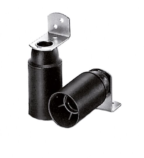 E14-Fassungen, dreiteilig Glattmantel, Mantelsperre, schwarz, Material: PET GF, T190, Nennwert: 2/250 Buchsenklemmen: 0,5-2,5 qmm Außenwinkel Löcher diagonal für Schrauben M3 Gewicht: 24 g Typ: 54012