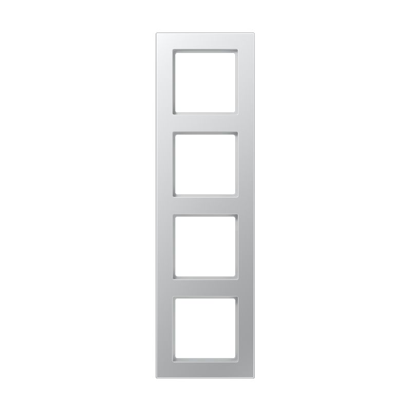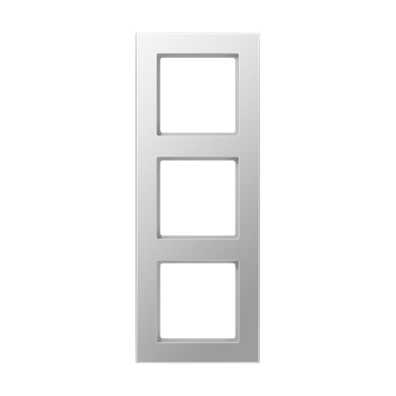 Rahmen 2fach, aluminium für waagerechte und senkrechte Kombination für die Serie A 1fach-Rahmen auch für British-Standard-Installationen geeignet (Tragring 80 x 80) IP20 Material: Thermoplast lackiert Maße (B x H): 85 x 156 mm
