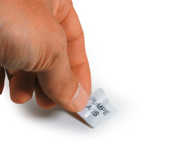 Markierer für die Kennzeichnung von Betriebsmitteln. Die Markierer können mit einem Drucker oder Plotter und entsprechender Software beschriftet werden.