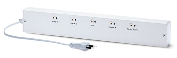 6 Kanal-Empfänger für die Sender INSTAT + 868, INSTAT 868 r1 oder -r1o zum Schalten von Stellantrieben bei Fussbodenheizungen, Mit Ventilschutz-, Pumpenlogikfunktion und Notbetrieb bei Störungen. Wirkrichtungsumkehr für Kühlen statt Heizen. Mit Anzeigelampen für den Ausgangszustand oder Störung. Steckerfertig, mit Hutschiene für Wandbefestigung.