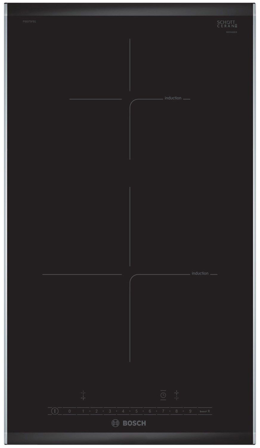 60 cm: Platz für 4 Töpfe oder Pfannen Flexibilität der Kochzonen Bräterzone: Extra zuschaltbare Kochzone für großes Bratgeschirr Kochzone vorne links: 180 mm, 1.8 kW (maximale Leistung 3.1 kW) Kochzone hinten links: 180 mm, 280 mm, 1.8 kW (maximale Leistung 3.1 kW) Kochzone hinten rechts: 145 mm, 1.4 kW (maximale Leistung 2.2 kW) Kochzone vorne rechts: 210 mm, 2.2 kW (maximale Leistung 3.7 kW) Benutzerfreundlichkeit Touch Select: Steuerung der Leistung mit den aufgedruckten +/- Touch-Tasten. 17 Leistungsstufen: Stellen Sie die Hitze mit 17 Leistungsstufen (9 Hauptstufen und 8 Zwischenstufen) präzise ein. Abschalttimer: schaltet die Kochzone am Ende der eingestellten Zeit aus (z. B. für gekochte Eier). Countdown-Timer: Ein Signal ertönt am Ende der eingestellten Zeit (z. B. beim Pastakochen). Zeitersparnis und Effizienz PowerBoost-Funktion für alle Kochzonen: Mit 50 % mehr Leistung z. B. Wasser schneller zum Kochen bringen als auf höchster Leistungsstufe. QuickStart: Beim Einschalten wählt das Kochfeld automatisch die Kochzone aus, auf dem im ausgeschaltetem Zustand Kochgeschirr aufgesetzt wurde. ReStart: Im Falle von unbeabsichtigtem Ausschalten des Kochfeldes bleiben alle Einstellungen erhalten, wenn Sie innerhalb von 4 Sekunden wieder einschalten. Schnelles Abschalten: Schnelles Abschalten durch längeres Berühren der Bedienfläche der Kochzone. Design Umlaufender Edelstahl-Rahmen Sicherheit 2-stufige Restwärmeanzeige je Kochzone: Zeigt an, welche Kochzonen noch heiß oder warm sind. Kindersicherung: Verhindert eine unbeabsichtigte Aktivierung des Kochfeldes. Hauptschalter: Alle Kochzonen auf einmal ausschalten. Automatische Sicherheitsabschaltung: Aus Sicherheitsgründen schaltet sich das Kochfeld nach einer voreingestellten Zeit ohne Interaktion automatisch ab. Installation Maße des Gerätes (HxBxT mm): 55 x 583 x 513 Erforderliche Nischengröße (HxBxT mm): 55 x 560 x (490 - 500) Minimale Arbeitsplattenstärke: 16 mm Gesamtanschlusswert: 7400 W PowerManagement Funktion: Bei Bedarf die maximale Leistung begrenzen (abhängig von der Absicherung der Elektroinstallation). Netzkabel: 110 cm,