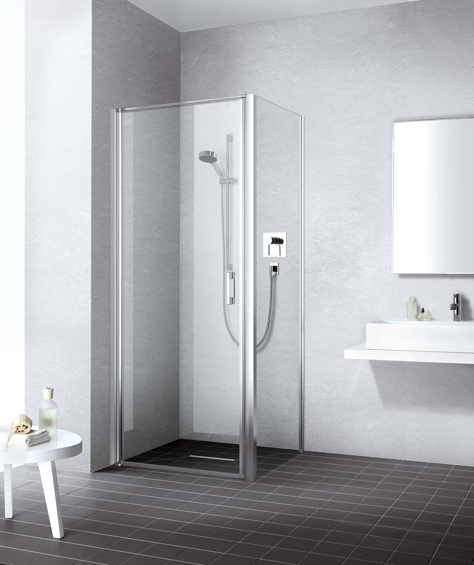 Kermi Pendeltür LIGA 1-flügelig 90 x 200 cm, silber mattglanz, ESG klar, rechts, auf Duschwanne| Art der Tür | Dreh einteilig |