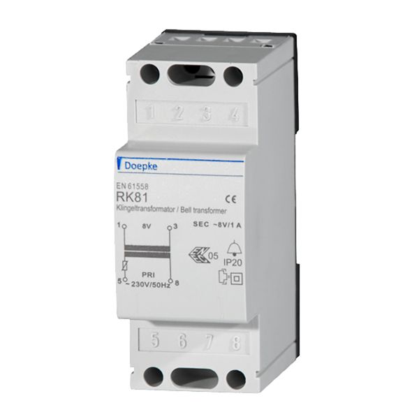 DOEPKE Klingeltransformator 230V 8/12V 2/2A REG 3TE f.Reiheneinb Kurzschlusssicher