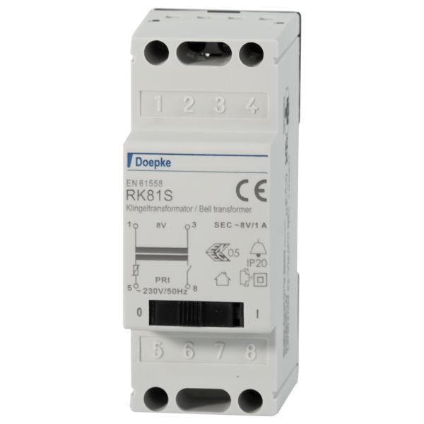 Klingeltransformator 230V 8V 1A REG 2TE f.Reiheneinb Kurzschlusssicher m.Ein/Aus