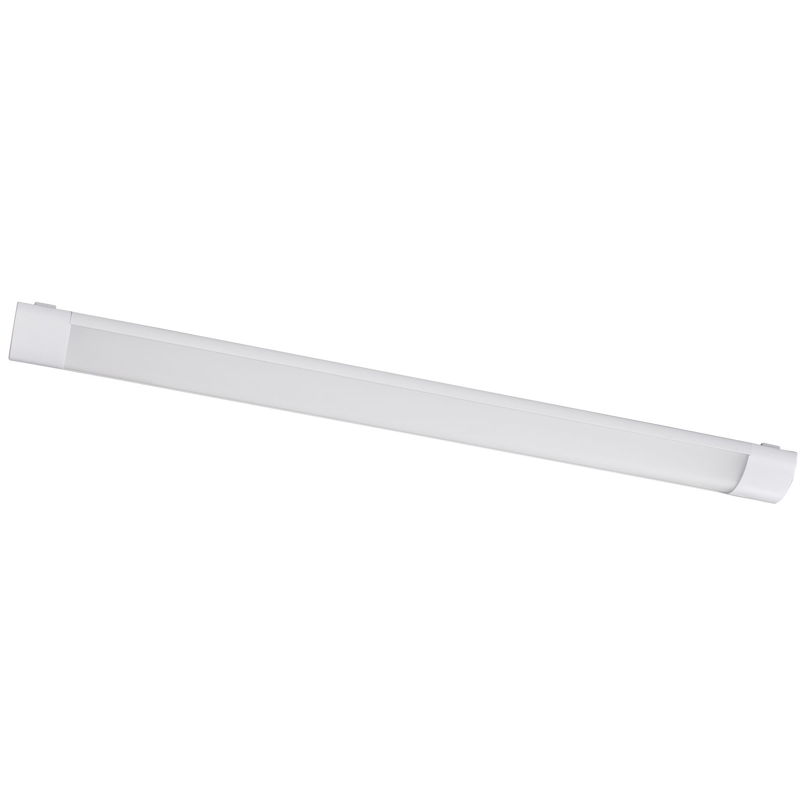 Die LED-Lichtleiste kann aufgrund der hohen Lichtausbeute problemlos als Hauptbeleuchtung für zahlreiche Räume eingesetzt werden. Dank des eleganten Designs fügt sie sich dabei harmonisch in jede Umgebung ein. Die Kabeleinführung in den Klemmraum, welcher unauffällig hinter der seitlichen Abdeckung untergebracht ist, erfolgt von der Rückseite. Sollte kein Anschluss direkt an der Decke vorhanden sein, kann die Leuchte mit den mitgelieferten Abstandshaltern montiert werden, wodurch das Kabel seitlich zugeführt werden kann. Die Abstandshalter haben eine Aufbauhöhe von 10mm. Abdeckung: opal.