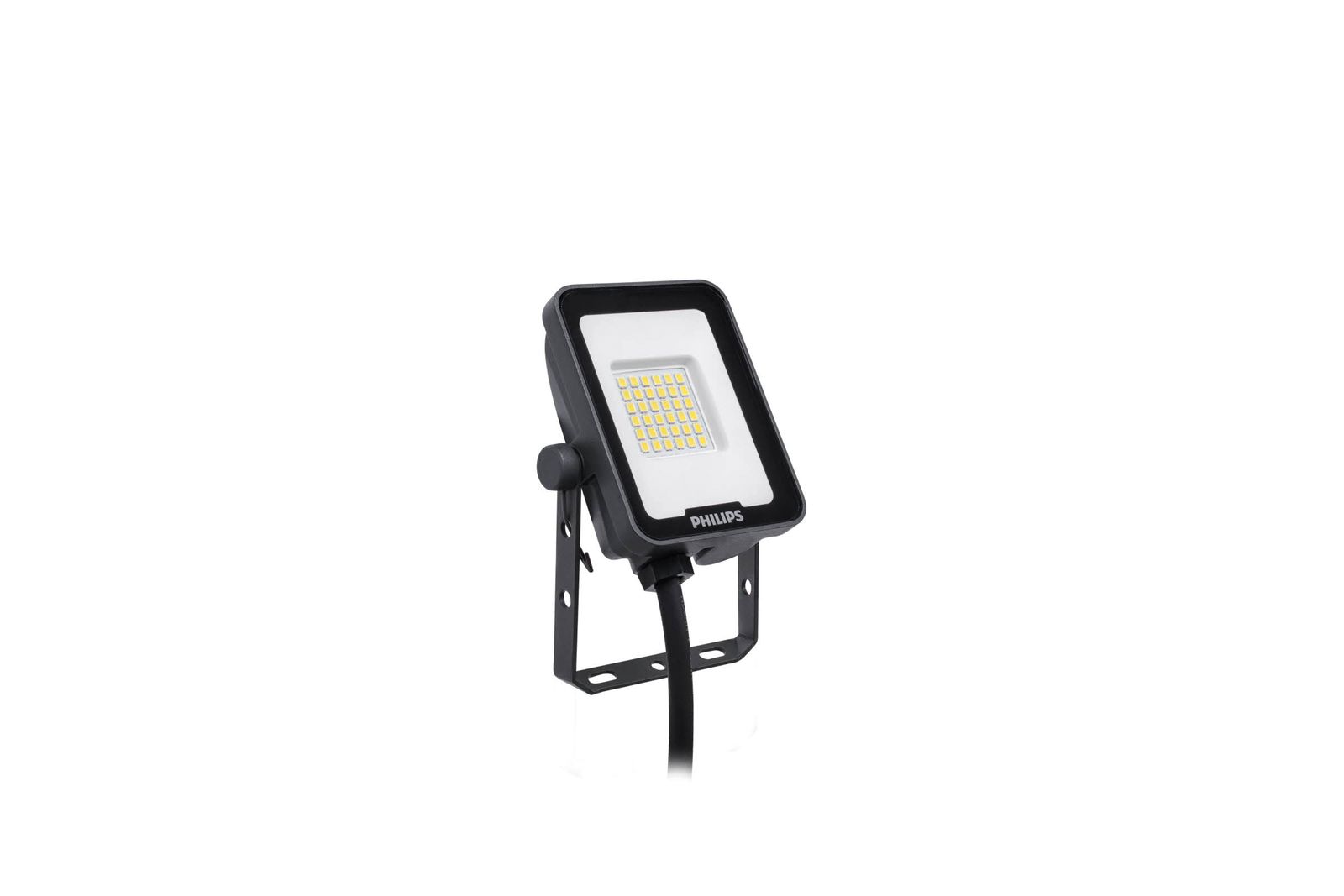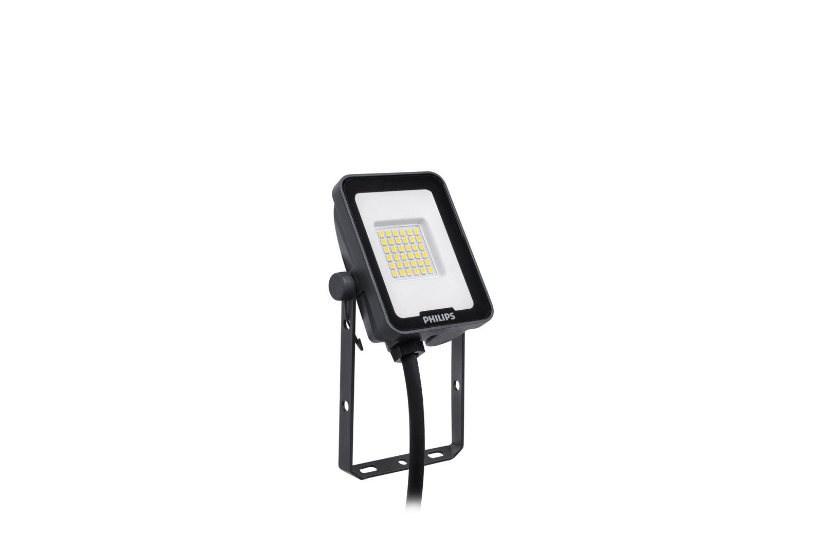Ledinaire All-in-Scheinwerfer, Aluminiumdruckguss, Grau, Verkehrsgrau B (RAL7043), Einfache Pulverbeschichtung, Auf LED-Platte integrierter Treiber (DoB), All-in, Multi Color Temperature, 2200 lm, 2400 lm, 20 W, 120 lm/W, 110 lm/W, 3000 K, 4000 K, 6500 K, (0.440,0.403): (0.369,0.364): (0.313,0.337) SDCM5, CRI80, Symmetrisch, IP65 | Schutz gegen Eindringen von Staub, strahlwassergeschützt, IK07 | 2 J verstärkt, SchutzklasseI, Überspannungsschutz bis 1,5 kV im Gegentaktmodus und bis 1,5 kV im Gleichtaktmodus, Kabel (1,0m) ohne Steckverbinder, Freie Anschlussleitungen