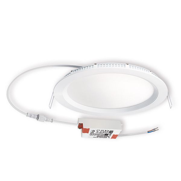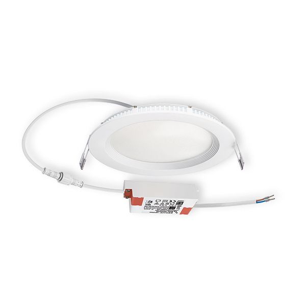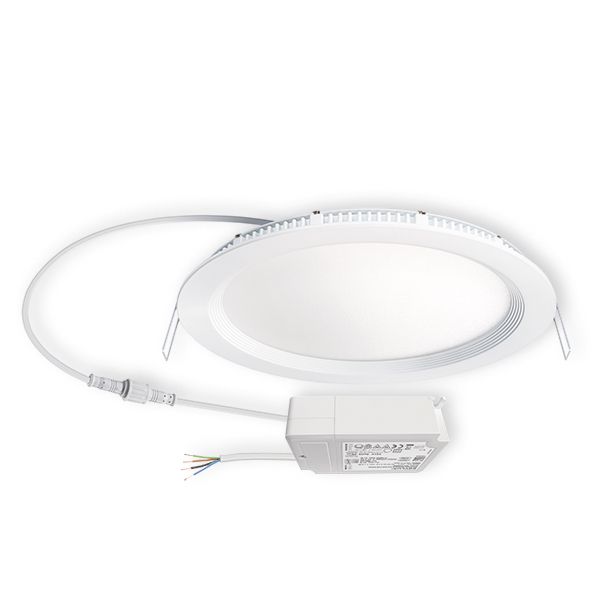 LED-Downlight, 9 W für Deckeneinbau. Einbauleuchte mit opaler Abdeckung (Diffusor). Hochwertiges Gehäuse, Leuchtenkörper aus Aluminium, weiß pulverbeschichtet (RAL 9003). Einsetzbar als Deckeneinbau ohne weiteres Zubehör. Farbtemperatur: 4000 K mit geringsten Farbtoleranzen. Lichtstrom: 850 lm. Gute Lichtqualität. Sehr gute Systemeffizienz. Bemessungslebensdauer L80B50 bei 25 °C: 40000 h. Betriebsgerät: DALI SwitchDIM (bereits im Lieferumfang enthalten).