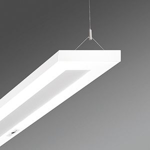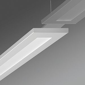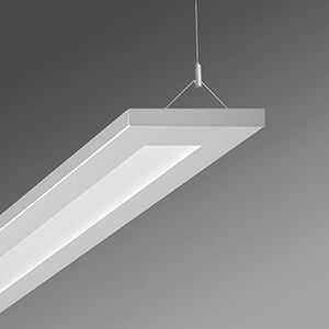 Stahlblechgehäuse, flacher rechteckiger Querschnitt, sichtbare Bauhöhe 26mm, Stirnseiten aus Stahl, vorbereitet für Lichtbandmontage, Lichtverteilung direkt/indirekt strahlend mittels Diffusor micro-prismatisch aus PMMA. Geeignet für Bildschirmarbeitsplätze, rundumentblendet 65° < 3000 cd/qm nach aktueller Norm DIN-EN 12464-1. Elektrischer Anschluss über 3-polige Anschlussklemme in Steckkontakt-Technik.