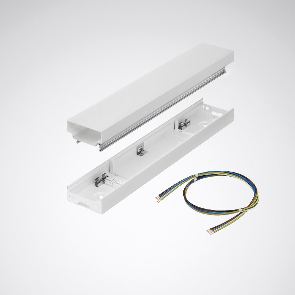 LED-Anbauleuchte für Einzel- oder Lichtbandanwendungen. Mit integriertem LiveLink WiFi Steuergerät und LiveLink Sensor für tageslichtabhängige Regelung und Anwesenheitserfassung sowie WLAN-Modul für eine sichere Inbetriebnahme und Bedienung (WPA2 Verschlüsselung). Vordefinierte Raumkonfigurationen (Use Cases) mit allen planungsrelevanten Daten ermöglichen eine einfache und schnelle Inbetriebnahme. Ansteuerung von bis zu 64 DALI-Teilnehmern. Die Inbetriebnahme erfolgt mit Hilfe der Inbetriebnahme App LiveLink Install für Tablet-PCs. Sensor IR Micro zur tageslichtabhängigen Regelung und Anwesenheitserfassung. Konstantlichtregelung mit Abschaltfunktion bei ausreichendem Tageslicht. Passiv-Infrarot-Anwesenheitssensor, mit hochsensiblem multisegment Pyrosensoren, mit einstellbarer Ausschaltverzögerungszeit, wahlweise im Automatik Betrieb (automatisch Ein, automatisch Aus) oder Halbautomatik Betrieb (automatisch Aus, manuell Ein). Spezieller IQ-Modus zur automatischen Anpassung der Nachlaufzeit an die Raumnutzung. Elektrische Versorgung über die DALI Schnittstelle des Steuergerätes. Belegt 2 DALI-Teilnehmer. Quadratische Erfassung, Erfassungsquadrate Präsenz max. 4 m x 4 m (16 m2) / Radial max. 4 m x 4 m (16 m2) / Tangential max. 6 m x 6 m (36 m2) bei einer empfohlenen Montagehöhe von 2,8 m, zulässige Montagehöhe 2,5 m bis 4 m. Anbauleuchte für die Deckenmontage. Mit separat zu bestellendem Einbau-Zubehör auch für die Verwendung in Paneeldecken geeignet (SFlow ZBP L2). Für Paneeldecken im Modul 100. Mit separat zu bestellendem Zubehör auch für die abgehängte Montage geeignet (ZS1P 2000). Optisches System in Micro-Reflektor-Technology (MRW) mit hocheffizienten Reflektorkammern aus weiß-poliertem Kunststoff für hohen Lichtkomfort und Effizienz. Mit zusätzlicher, im optischen System integrierten, klaren Abdeckscheibe für raumseitig flächenbündigen Abschluß und Schutz der LED. Dezente seitliche Lichtauskopplung über die gesamte Leuchtenlänge. Mit symmetrisch breit strahlender Lichtstärkeverteilung. Leuchtenlichtstrom und Lichtfarbe fest eingestellt. LED-System und Leuchtenoptik als Baugruppe werkzeuglos in Leuchtenkörper einzurasten. Baugruppe mit Stahlseil vor Absturz bei Montage gesichert. Bemessungslichtstrom 4000 lm, Bemessungsleistung 28 W, maximale Leuchten-Lichtausbeute 143 lm/W. Lichtfarbe neutralweiß, ähnlichste Farbtemperatur (CCT) 4000 K, allgemeiner Farbwiedergabeindex (CRI) Ra > 80. Farborttoleranz (initial MacAdam) = 3 SDCM. Mittlere Bemessungslebensdauer L80 (tq 25 °C) = 50.000 h. Die Lichtquelle ist entsprechend der Ökodesign-Anforderungen (VO (EU) 2019/2020) austauschbar. Flimmern: Pst LM = 1,0 bei Volllast. Stroboskop-Effekt: SVM = 0,4 bei Volllast. Leuchtenkörper aus Stahlblech. Oberfläche weiß beschichtet (ähnlich RAL 9016). Maße (L x B): 1473 mm x 84 mm, Leuchtenhöhe 45 mm. Schutzklasse (EN 61140): I, Schutzart (DIN EN 60529): IP20, Stoßfestigkeitsgrad nach IEC 62262: IK03, Prüftemperatur Glühdrahttest gemäß IEC 60695-2-11: 650 °C. Zulässige Umgebungstemperatur (ta): -20 °C bis 25 °C. Gewicht: 4,4 kg. Netzseitiger Anschluss erfolgt mittels Steckklemmen. Elektrische Verbindung der Baugruppen erfolgt selbständig. Mit elektronischem Betriebsgerät, digital dimmbar (DALI). Betriebsgerät gemäß DALI-2-Standard (EN 62386). Leuchte mittels Tastfunktion über DALI-Steuerklemmen schalt- und dimmbar (Touch DIM). Das Betriebsgerät ist entsprechend der Ökodesign-Anforderungen (VO (EU) 2019/2020) austauschbar. Die Leuchte ist Monitoring ready (MOR) und liefert Leuchtendaten zur Überwachung oder vorausschauenden Wartung. Sie ist damit kompatibel zu den TRILUX Monitoring Services. Das Produkt erfüllt die grundlegenden Anforderungen der anwendbaren EU-Richtlinien und des Produktsicherheitsgesetzes und trägt die CE-Kennzeichnung. Zusätzlich ist die Leuchte durch eine unabhängige Prüfstelle ENEC-zertifiziert. Leuchte 10 Jahre, Ersatzteile (LED-Modul, Betriebsgerät, optisches System) 15 Jahre nach Rechnungsdatum unter Vorbehalt vertretbarer Änderungen, die