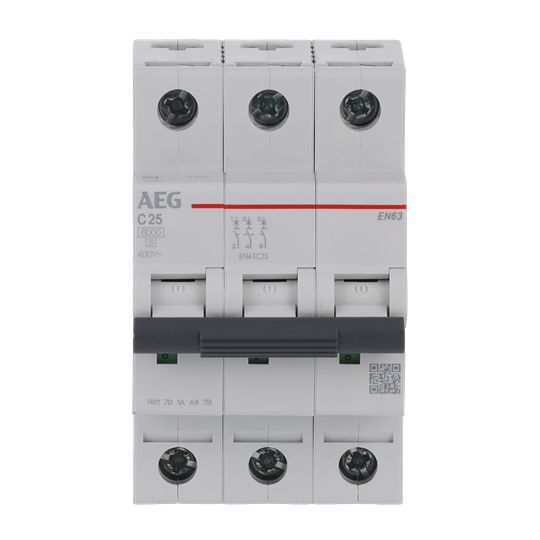 Leitungsschutzschalter schützen und steuern Stromkreise gegen Überlast und Kurzschlüsse. Durch den Einsatz eines LS wird eine zuverlässige und sichere Elektroinstallation sichergestellt. Leitungsschutzschalter EN60 (6kA) der AEG Line sind sicher und zuverlässig: Höchster Isolationsgrad IP40, Knebelsperre, Plombierbare Anschlüsse. Anwenderfreundlich. Multifunktional: Anbau von Zubehör möglich sowie kaskadierbar. Ein Gerätetyp für alle Hauptfunktionen, Fernauslöser und Unterspannungsauslöser, Hilfsfunktionen. QR-Code auf den Geräten für weitere technische Informationen. Einfach zu installieren: Sowohl Stift- als auch Gabelanschlüsse verwendbar, Hohes Anzugdrehmoment 4,5 Nm, Großzügig dimensionierte Anschlußklemmen Leitungsschutzschalter 35mm². Bemessungsströme von 6 bis 63A in B- und C-Charakteristik.