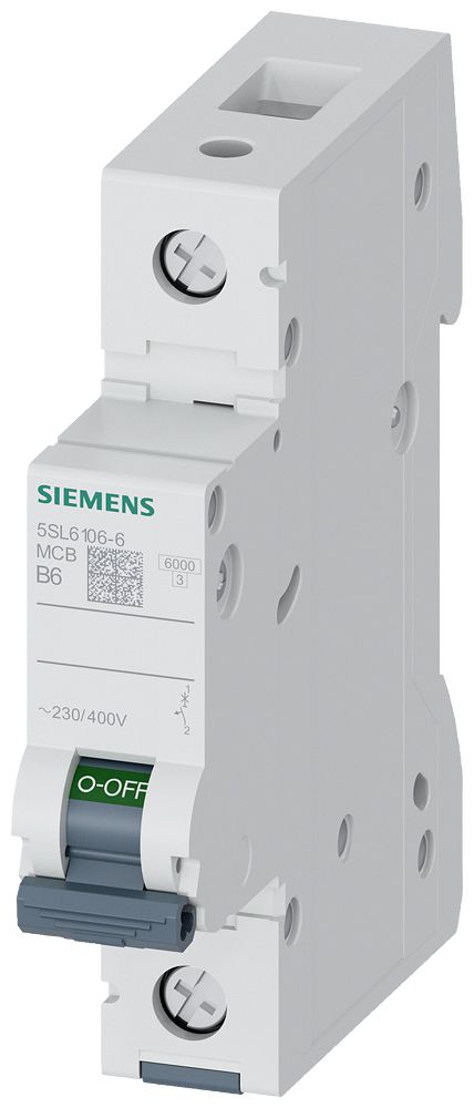 Leitungsschutzschalter 230/400V 6kA, 1-polig, B, 16A Leitungsschutzschalter SENTRON 5SL6 für den sicheren Kurzschluss- und Überlastschutz für Standardanwendungen im Wohn- und Zweckbau. Werkzeuglose Montage und Demontage des Geräts. Einfache Verdrahtung der Einspeisung durch die hinten liegende Sammelschiene. Die Leitungsschutzschalter 5SL sind erhältlich in 1-, 2-, 3-, 4- sowie in 1+N- und 3+N-poliger Ausführung sowie in weiteren Sondertypen. Das umfangreiche Zubehör, wie z.B. Hilfsschalter, ermöglicht die vielfältige Erweiterung der Funktionen. Einfach sicher mit den Schutzgeräten von SENTRON.