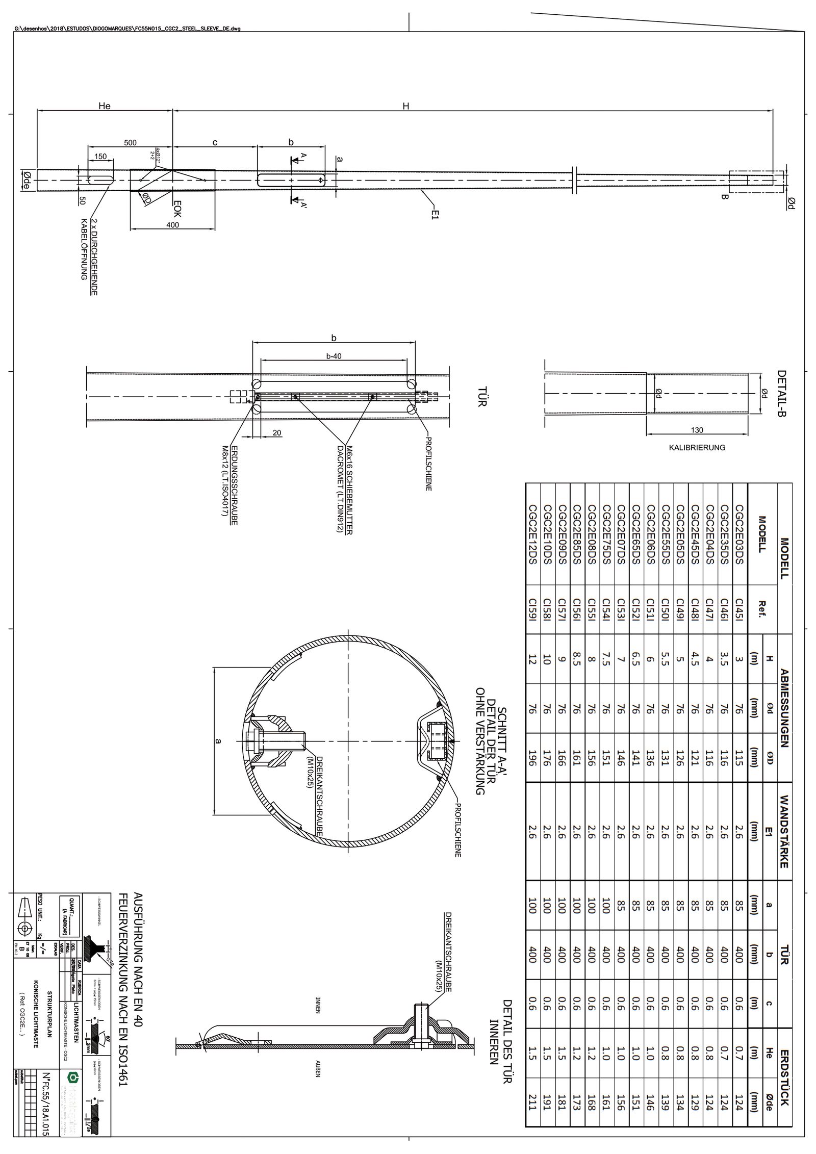 Lichtmast, 8,0/76, Erdstück, konisch-rundmït Stahlmanschette