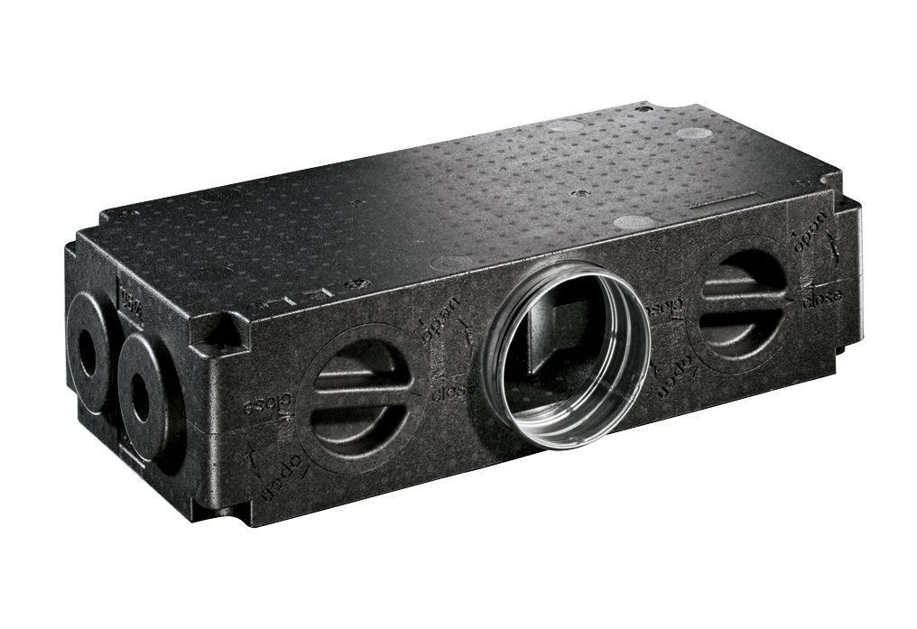 <p> - Luftverteiler mit 8 Anschlüssen für Flexrohre MF-F.</p><p> - Aus schalldämmendem Material.</p><p> - Optimale Luftverteilung dank integrierter Strömungskulissen.</p><p> - Mit 2 Revisionsöffnungen seitlich.</p><p> - Mit vorgebohrten Löchern für die Montage mit Gewindestangen.</p><p> - Hohe Lebensdauer und Umweltbeständigkeit.</p><p></p><p>Artikel:</p><p>MF-V75-8</p><p> - Luftrichtung: Be- und Entlüftung</p><p> - Volumenstrom: 300 m3/h / empfohlen</p><p> - Einbauort: Decke / Wand / Fußboden</p><p> - Material: Kunststoff EPP</p><p> - Kunststoffangaben: PVC-frei</p><p> - Gewicht: 1,85 kg</p><p> - Gewicht mit Verpackung: 1,9 kg</p><p> - Anschlussdurchmesser: 160 mm</p><p> - Anschlussdurchmesser Flexrohr: 75 mm</p><p> - Anzahl Anschlussstutzen: 8</p><p> - Breite: 710 mm</p><p> - Höhe: 185 mm</p><p> - Tiefe: 350 mm</p><p> - Breite mit Verpackung: 712 mm</p><p> - Höhe mit Verpackung: 187 mm</p><p> -