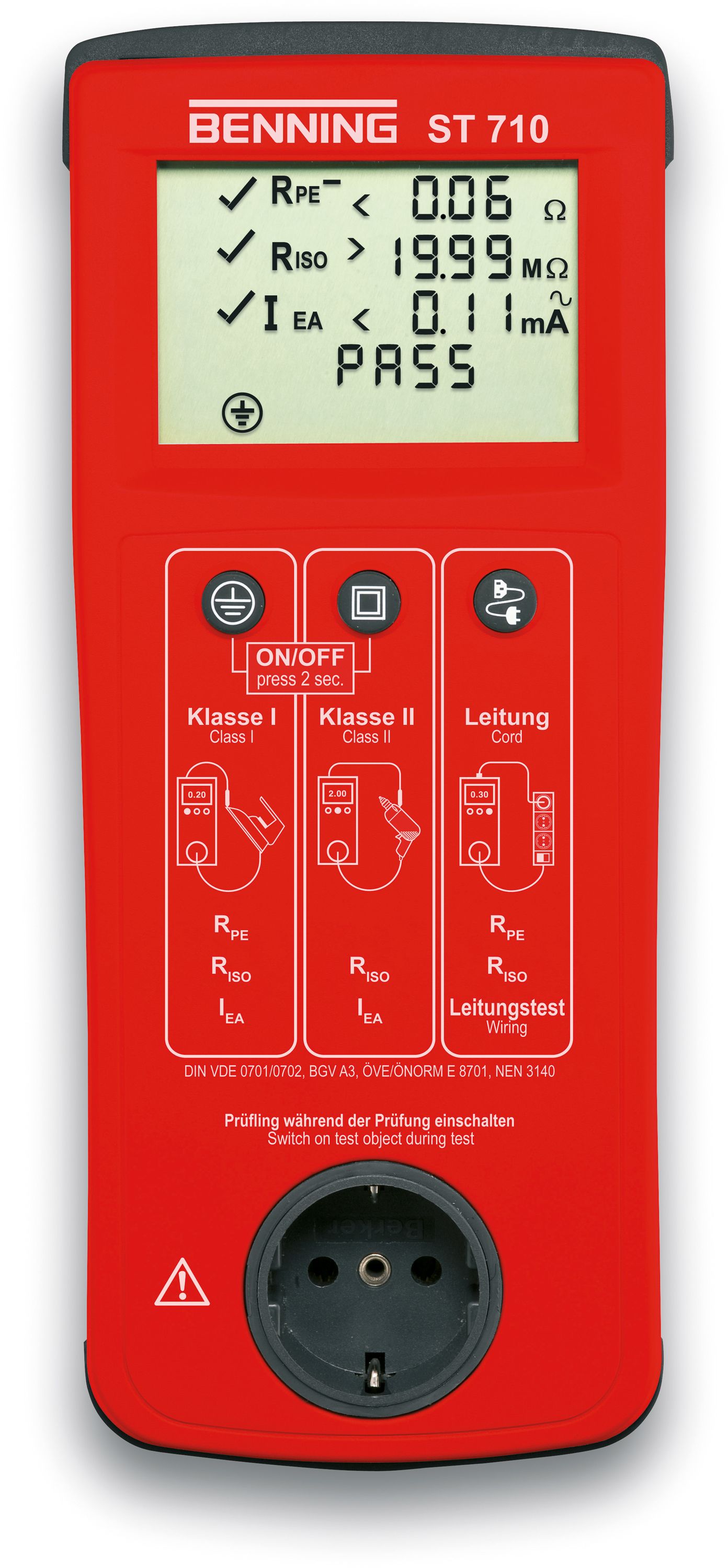 Messadapter 3-fach CEE. Für dreiphasige und einphasige Verbraucher, passiv, ohne netzspannungsabhängige Schalteinrichtungen. Zur Messung von RPE, RISO und IEA. 3-fach CEE-Kupplung: 16 A CEE 5-polig, 32 A CEE 5-polig, 16 A CEE 3-polig an Schutzkontaktstecker.