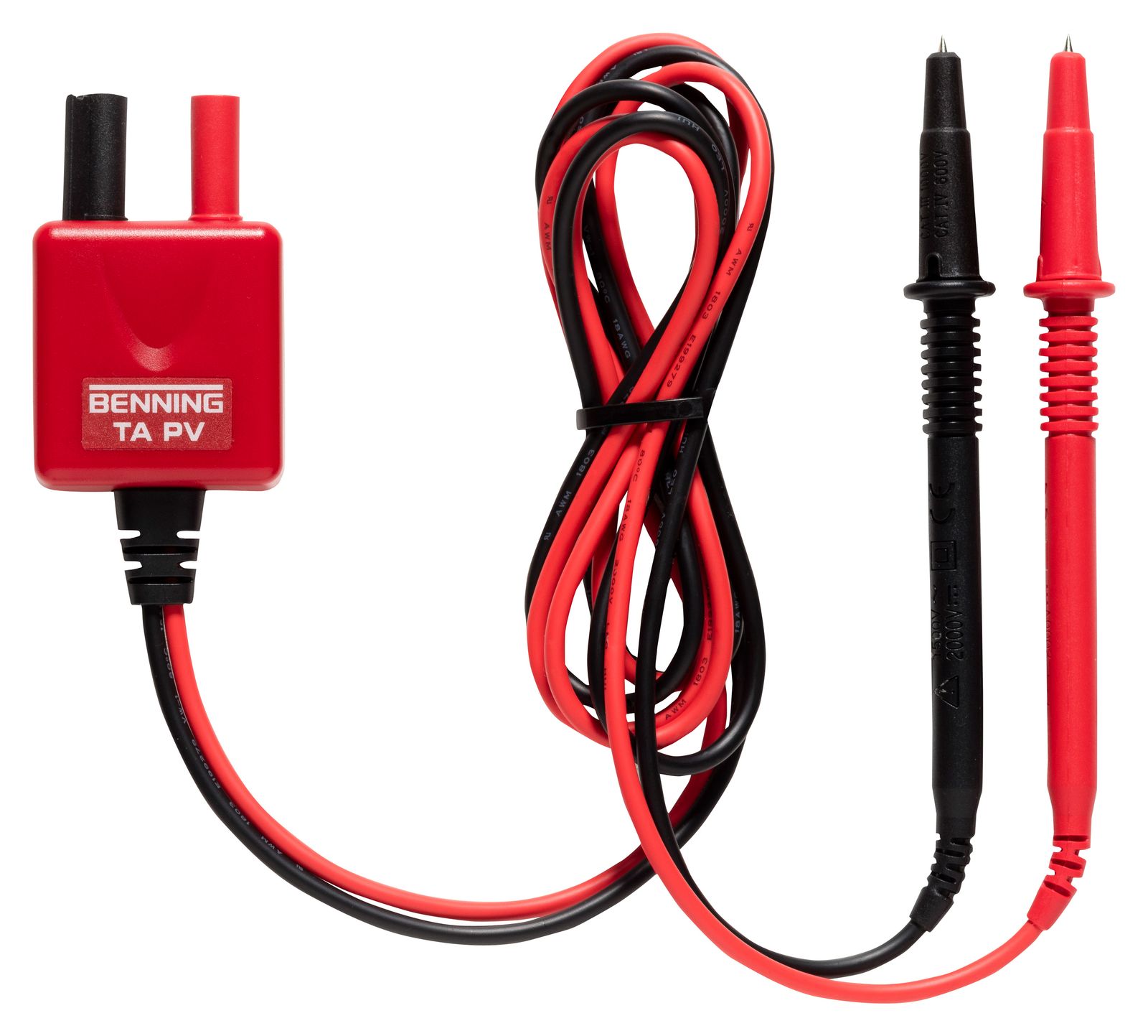 Benning MM 10-PV True RMS Digital-Multimeter für PV-Anlagen und Anwendungen mit hohen Systemspannungen. 4-stellig, beleuchtete LCD-Anzeige (6000 Punkte) mit Bargraph. Gleichspannung 100 µV - 1000 V (2000 V über TA PV), Wechselspannung 100 µV - 1000 V (1500 V über TA PV), Widerstand 0,1 Ohm - 40 MOhm, Kapazität 1 nF - 10 mF, Frequenz 1 Hz - 100 kHz, Temperatur -40 °C - +400 °C. Durchgangsprüfung (< 20 Ohm - 200 Ohm)/ Diodenprüfung (1,5 V). Echteffektivwertmessung TRUE RMS. Datenlogger- und Speicherfunktion (4000 Messwerte). Schnittstelle Bluetooth. Kostenlose IOS- und Android-App BENNING MM-CM Link zum Download, Speichern und Teilen von Messwerten via Smartphone/Tablet. AutoV-Funktion für automatische AC/ DC-Spannungserkennung. Niedrige Eingangsimpedanz (LoZ) zur Unterdrückung von kapazitiv/induktiv eingestreuten Spannungen. Tiefpassfilter (HFR 800 Hz) für Messungen an getakteten Motorantrieben. Voltsensor zur berührungslosen Phasen- und Kabelbruchprüfung (rote LED). Messbereichswahl, Abschaltung, Batterieunterspannungsanzeige automatisch. HOLD, MAX/MIN, REL. CAT IV 600 V/ CAT III 1000 V. Inklusive Messadapter BENNING TA PV, Messleitungs-/ Krokodilklemmensatz, Tasche, Drahttemperaturfühler, 2 x 1.5 V