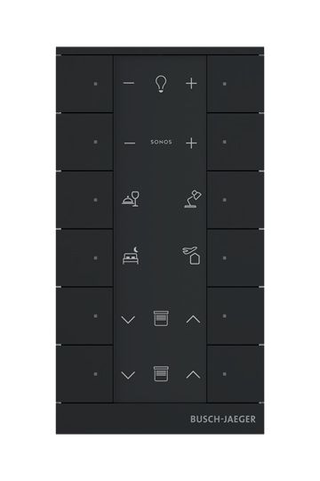 Busch-Tenton , Raumtemperaturregler mit Bedienfunktion 8-fach. Mit integriertem free@home Busanschluss. Mit Beschriftungsfeld. Tasterfunktion: Schalten / Dimmen / Jalousie /Wert senden / Lichtszenen u.a. Bedienelemente: Tastkontakte links/rechts. LED zur Anzeige des Schaltzustandes oder als Orientierungslicht. Mit integriertem Raumtemperaturregler und Temperaturfühler. Der Raumtemperaturregler kann als Haupt- oder /Nebenstellenbetrieb genutzt werden. Die Bedienung des Raumtemperaturreglers erfolgt ausschliesslich per App oder Nebenstelle. Spannungsversorgung über Bus-Klemmen (a,b). Designlinie: Busch-Tenton Produktreihe: Busch-free@home