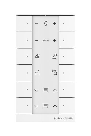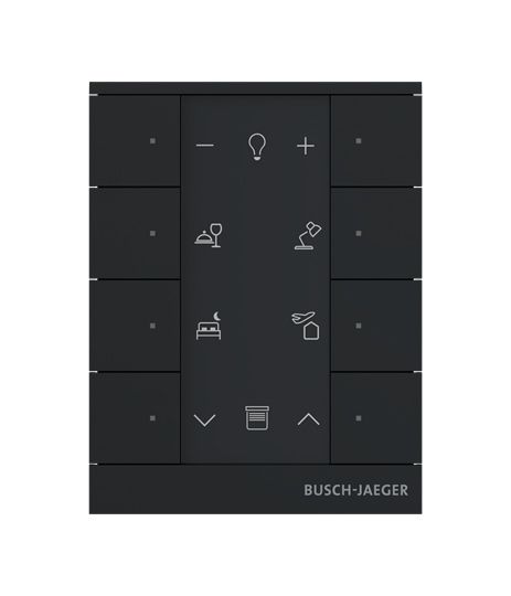Busch-Tenton , Raumtemperaturregler mit Bedienfunktion 8-fach. Mit integriertem free@home Busanschluss. Mit Beschriftungsfeld. Tasterfunktion: Schalten / Dimmen / Jalousie /Wert senden / Lichtszenen u.a. Bedienelemente: Tastkontakte links/rechts. LED zur Anzeige des Schaltzustandes oder als Orientierungslicht. Mit integriertem Raumtemperaturregler und Temperaturfühler. Der Raumtemperaturregler kann als Haupt- oder /Nebenstellenbetrieb genutzt werden. Die Bedienung des Raumtemperaturreglers erfolgt ausschliesslich per App oder Nebenstelle. Spannungsversorgung über Bus-Klemmen (a,b). Designlinie: Busch-Tenton Produktreihe: Busch-free@home