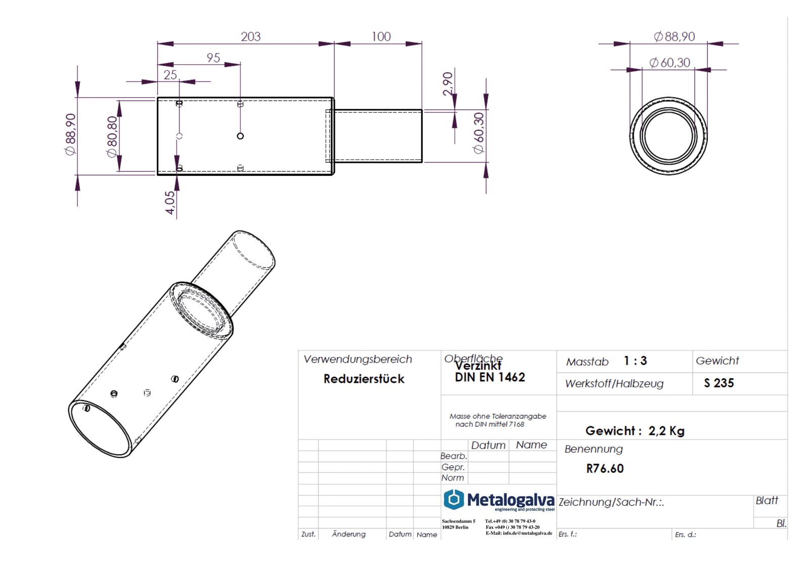 Reduzierstück 76mm 60mm 1f ST Zubehör| Anzahl der Arme des Aufsatzstücks | 1 |