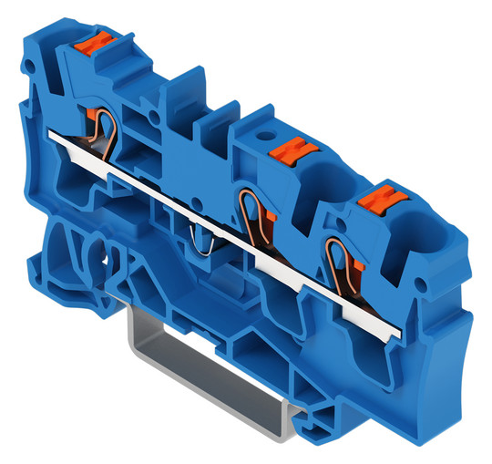 3-Leiter-Durchgangsklemme: mit Drücker: 4 mm²: mit Prüföffnung: für Anwendungen Ex i geeignet: seitliche und mittige Beschriftung: für Tragschiene 35 x 15 und 35 x 7,5: Push-in CAGE CLAMP : 4,00 mm²: blau