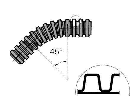 Der HEKAPLAST-Bogen 45° ist ein Verbundkabelschutzrohrbogen, innen glatt und außen gewellt nach DIN 16 961, aus Polyolefinen, in der Farbe schwarz für HEKAPLAST S. Zusammen mit der HEKAPLAST-Verbindungsmuffe ohne Dichtring wird eine sanddichte Verbindung bis IP-Code 54 nach DIN EN 60529 erreicht.