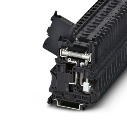Sicherungsreihenklemme, Art der Sicherung: Glas / Keramik / ..., Sicherungstyp: G / 6,3 x 32, Nennspannung: 500 V, Nennstrom: 10 A, Polzahl: 1, Anschlussart: Schraubanschluss, Bemessungsquerschnitt: 1,5 mm², Querschnitt: 0,5 mm²- 16 mm², Montageart: NS 35/7,5, NS 35/15, NS 32, Farbe: schwarz