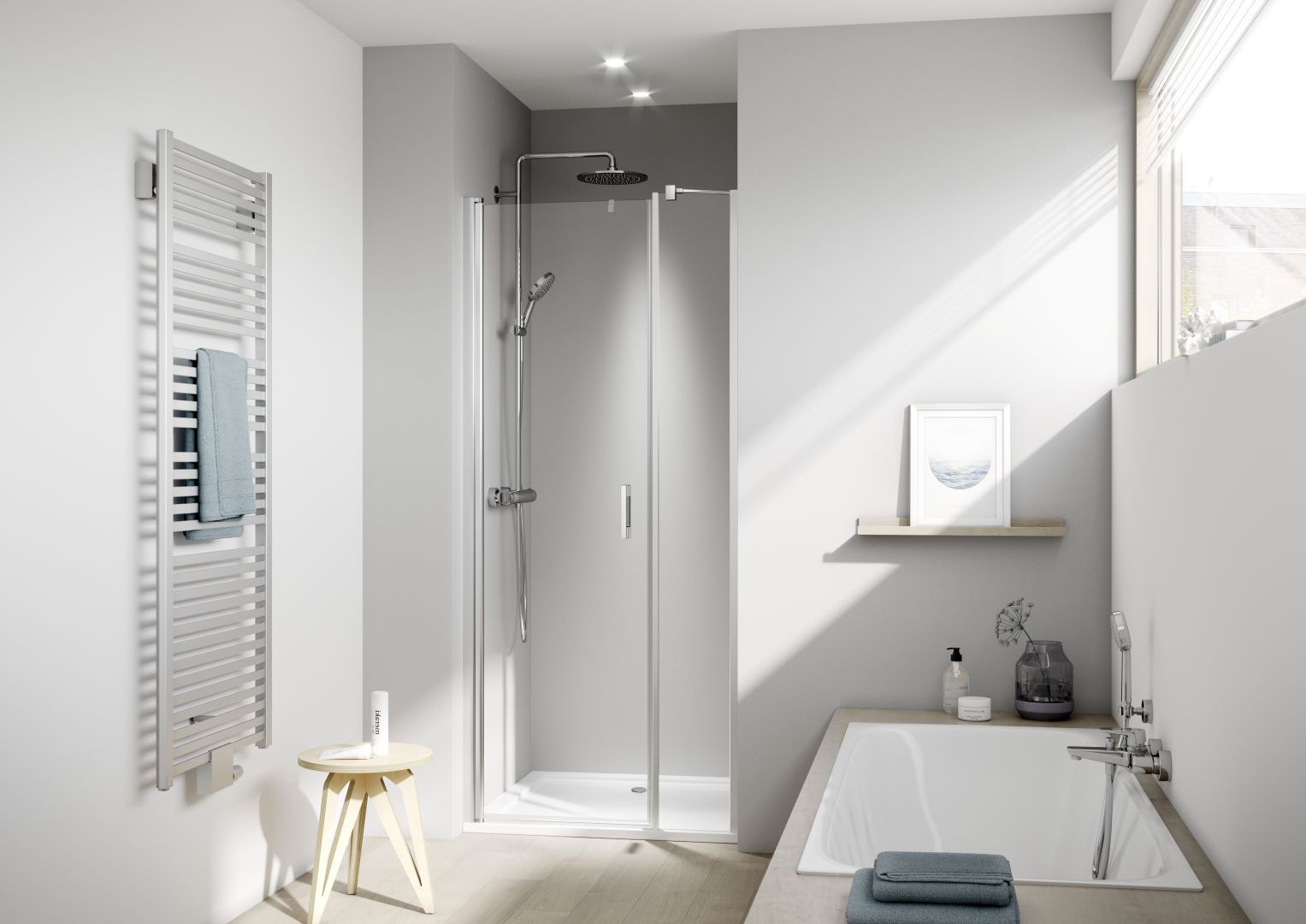Kermi Pendeltür LIGA 1-flügelig 90 x 200 cm, silber hochglanz, ESG klar, links, auf Duschwanne