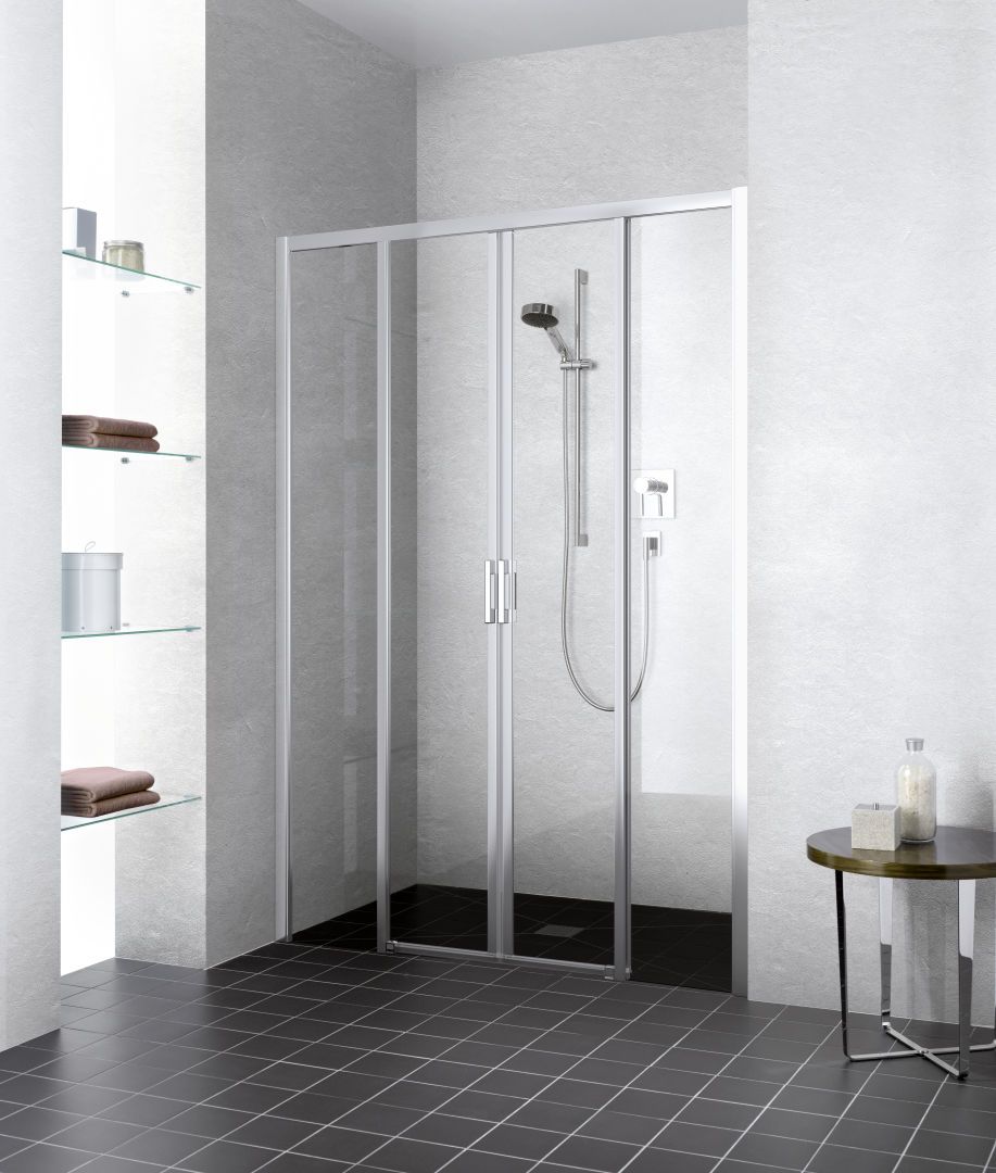 Kermi Gleittür Nova 2000 3-teilig mit Festfeld 90 x 185 cm, silber mattglanz, Kerolan Fontana