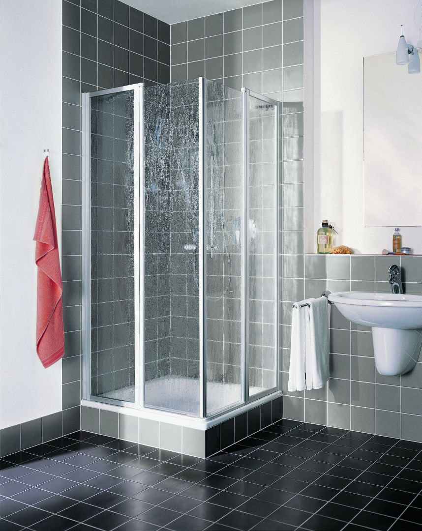 Kermi Eckeinstiegshälfte LIGA 2-teilig Pendel-Falttür 103 x 200 cm, silber mattglanz, ESG klar, rechts, auf Duschplatz