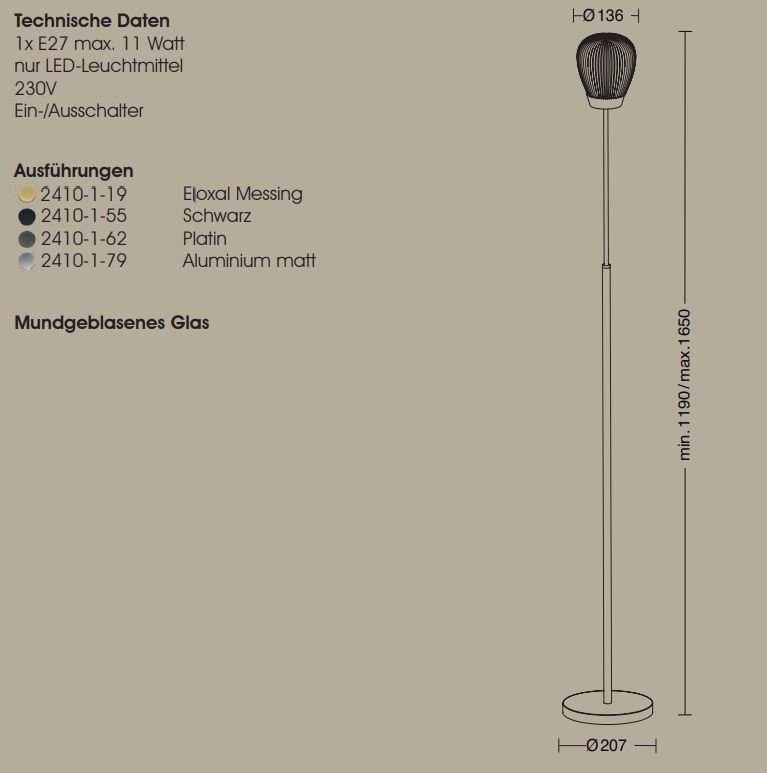 LED-Stehleuchte 17W AURA 2900K 1660lm Konv 1LED elektr.Trafo direkt m.Schalter