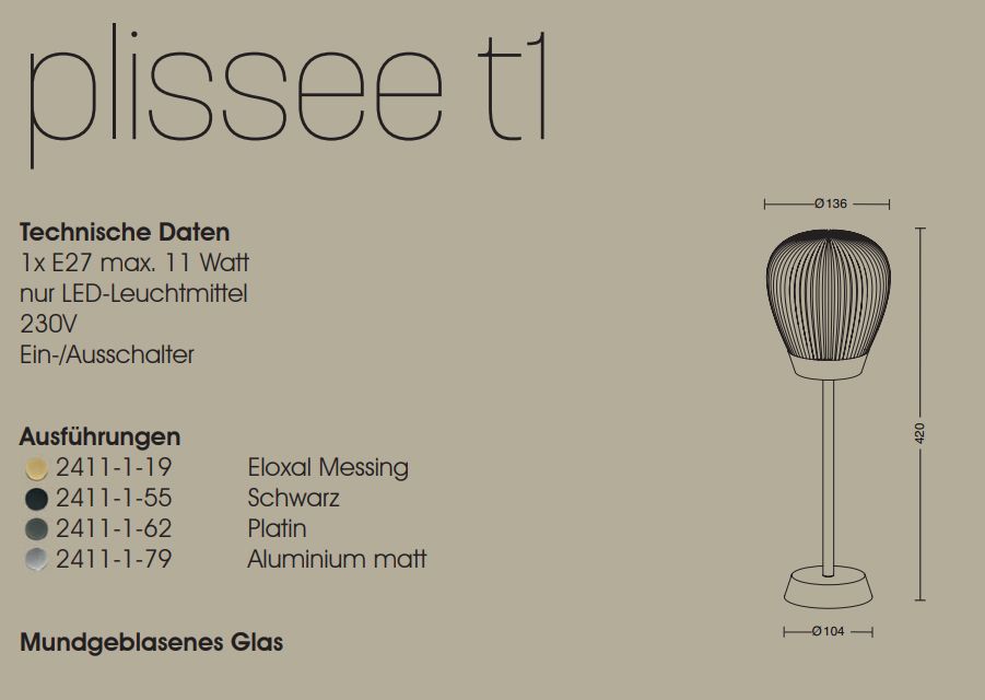 LED-Stehleuchte 11W PLISSEE direkt 1LED m.Schalt E27 platin