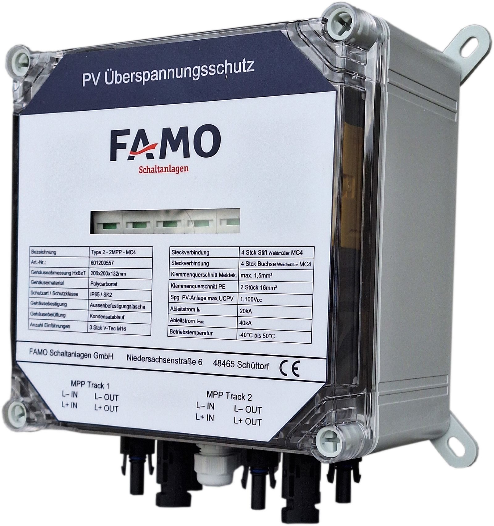 PV Überspannungsschutz 1000V DC Typ2 2x1 String Steckverbinder MC4