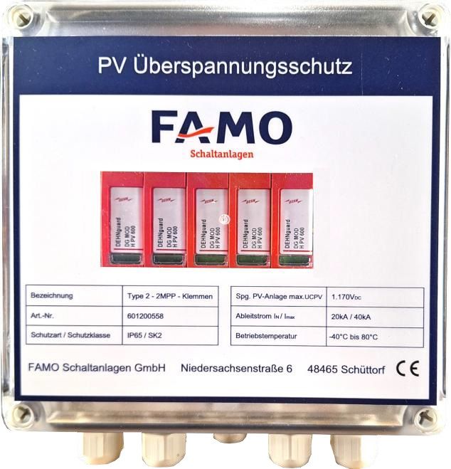 PV Überspannungsschutz 1000V DC Typ2 2x1 String Abgangsklemmen+Verschr.