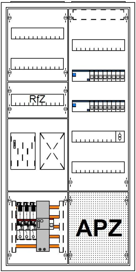 EFH-Komplettschrank m.APZ ABB 2xZählerkreuz SH35A Übersp.VDE-AR 4101