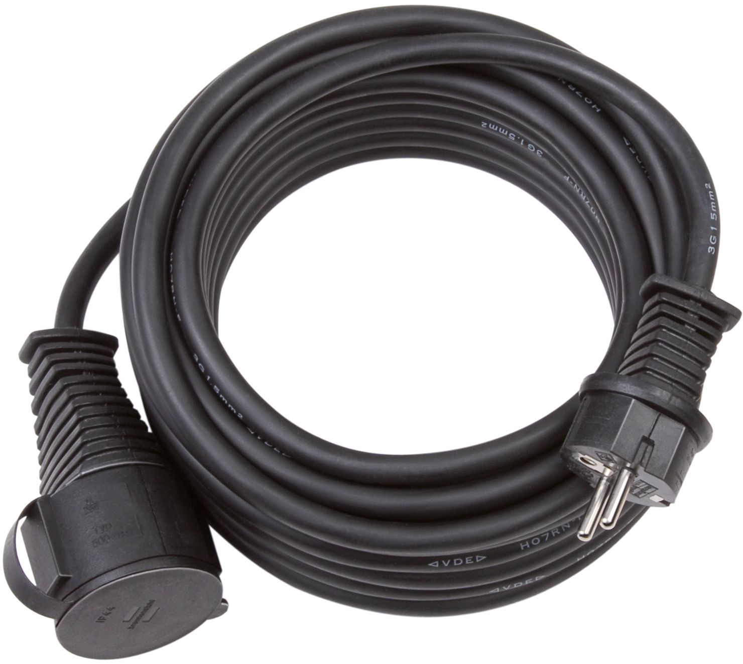 Netzanschlussleitung 10m 3x1,5qmm sw Schutzkontaktkupplung (Typ F) Gummi