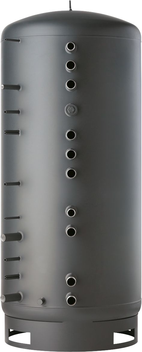 Anwendung Der Kombinations-Durchlaufspeicher eignet sich für die Trinkwarmwasser-Bereitung. Das Gerät kann sowohl als Pufferspeicher für die hydraulische Entkopplung der Volumenströme von Wärmepumpe und Heizkreis genutzt werden als auch zur Speicherung von Heizenergie. Der Durchlaufspeicher eignet sich für Ein- und Zweifamilienhäuser, bei hydraulisch zusammengeschalteten Geräten auch im Mehrfamilienhaus. Bei den SOL-Typen lässt sich solarthermische Unterstützung einbinden. Komfortmerkmale Der Stahlbehälter ist mit integriertem Wellrohr-Wärmeübertrager aus Edelstahl ausgestattet, der Trinkwarmwasser-Bereitung im Durchfluss-Betrieb sicherstellt. Nach vorn ausgerichtete Anschlussstutzen ermöglichen anlagenspezifische Hydraulikschaltungen. Über den Revisionsstutzen kann bei Bedarf ein Elektro-Einschraub-Heizkörper eingebaut werden. Effizienz Geringe Warmhalteverluste durch die als Zubehör erhältliche Wärmedämmung. Die gute Temperaturschichtung wird durch die abgestimmte Ein- und Ausströmtechnik mit integrierten PRO temp-Flow-Einströmungen erreicht. Die Strömungsturbulenzen