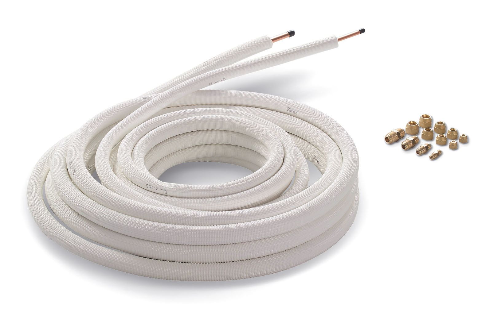 Die maximal zulässige Leitungslänge (siehe Technische Daten des Außenteils) ist zu beachten. Die Länge der Kältemittelleitung richtet sich nach den örtlichen Gegebenheiten. Die Kältemittelleitungen werden auf die bestellte Länge vorkonfektioniert (gebördelt und mit Bördelmuttern versehen) und die Außenteile mit entsprechend benötigter Kältemittelzusatzmenge vorgefüllt. Achtung: Die Installation der Verbindungsleitungen zwischen Innen- und Außenteil (evakuieren und befüllen der Kältemittelleitung) darf nur durch zertifizierte Handwerksbetriebe nach VO (EU) 2015/2067 erfolgen!