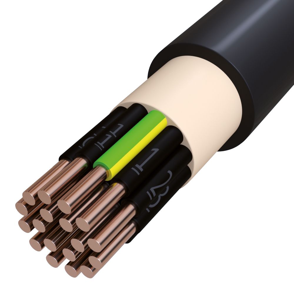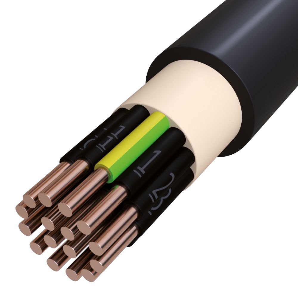 Starkstromkabel Eca NYY-JZ 12x1,5qmm RE TRS Ø19mm Polyvinylchlorid (PVC) sw Cu| Ader-Kennzeichnung | Ziffern |