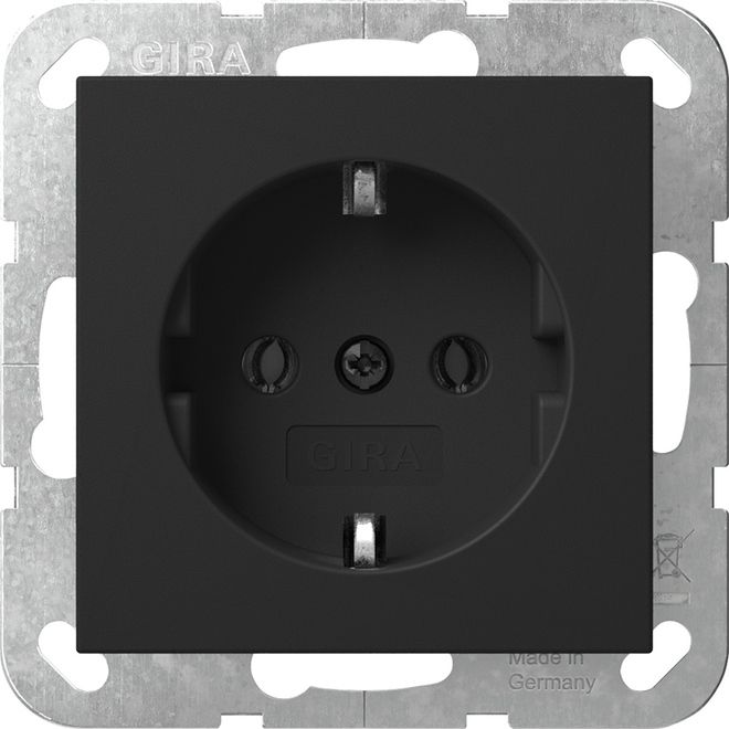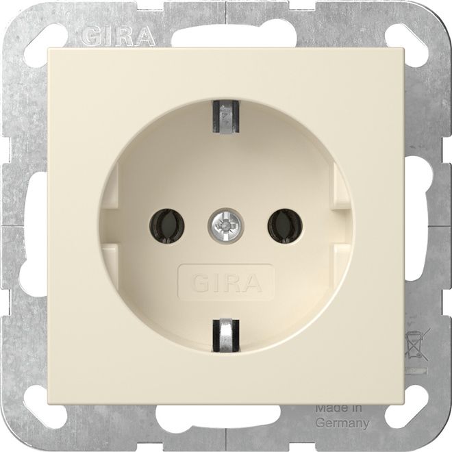 SCHUKO-Steckdose 16 A 250 V~ Reinweiß glänzend System 55 Merkmale: Tragring ist in Verbindung mit den Befestigungskrallen und Krallenschrauben geerdet. Schnellbefestigung (ca. 3,5 Umdrehungen pro Befestigungskralle). Eingehauste Spreizkrallen. Einfachere Krallenbefestigung durch robusten Schraubenkopfantrieb PZ1 / Schlitz / PH. Vereinfachte Installation durch patentierte Anordnung der großen Schlüssellochprofile mittels Dosenschrauben. Geringe Einbautiefe. Große, ergonomisch geformte Lösehebel. Stabiler Erdungsbügel mit massiven Erdungsfingern. Stabiler und korrosionsbeständiger Stahltragring. Bruchsicherer Thermoplastsockel. Hinweise: Mit erhöhtem Anpressdruck des Erdungsbügels geprüft nach T.N.O. Lieferumfang: