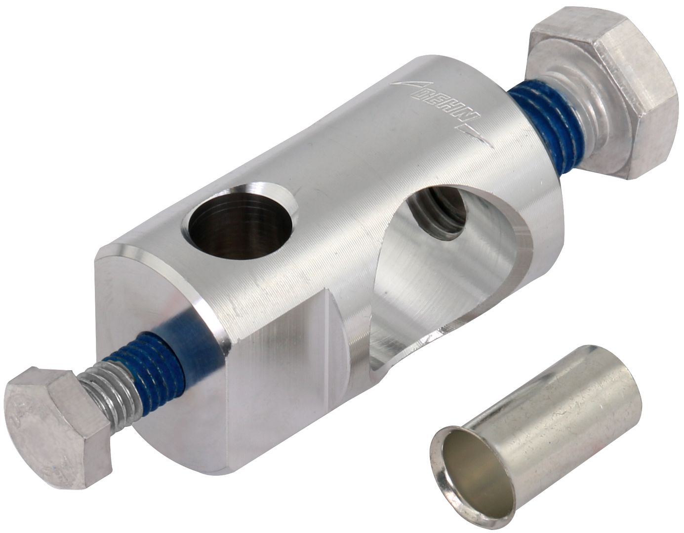 Anschlusselemente zum Abschließen der HVI power long Leitung an beiden Enden, beim Erstellen des Endverschlusses der Leitung im Stützrohr (Kopfstück) und Anschlusselement zum Anschließen an andere Teile des äußeren Blitzschutzes oder der Erdungsanlage (inkl. zwei Schrumpfschläuche).