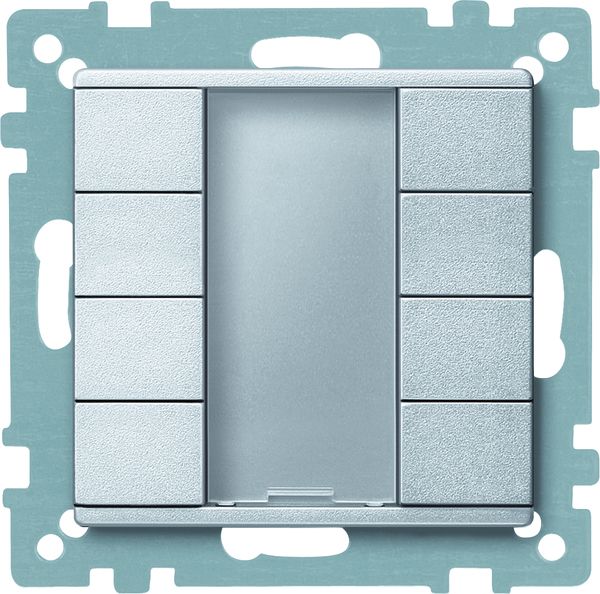Im Design System M. Mit integriertem Busankoppler. Taster mit 8 Bedientasten, Betriebs-, Statusanzeige und Schriftfeld. Die Betriebsanzeige kann auch als Orientierungslicht verwendet werden. Das Gerät wird über eine Busanschlussklemme mit der Busleitung verbunden. Softwarefunktionen KNX Schalten, Umschalten, Dimmen (ein-/zweiflächig), Jalousie (ein-/zweiflächig). Flanken löst 1,- 2-, 4- oder 8-Bit-Telegramme aus (Unterscheidung kurze/lange Betätigung). Flanken mit 2-Byte-Telegrammen (Unterscheidung kurze/lange Betätigung), 8-Bit-Schieberegler, Szenenabruf, Szenenspeicherung, Sperrfunktionen. Zubehör Beschriftungsbogen für Taster 6183xx Lieferumfang Mit Putzschutzhaube. Mit Busanschlussklemme. Material Thermoplast brillant. Farbe polarweiß glänzend.