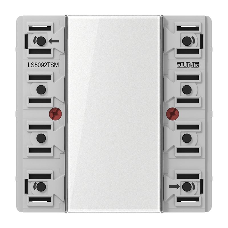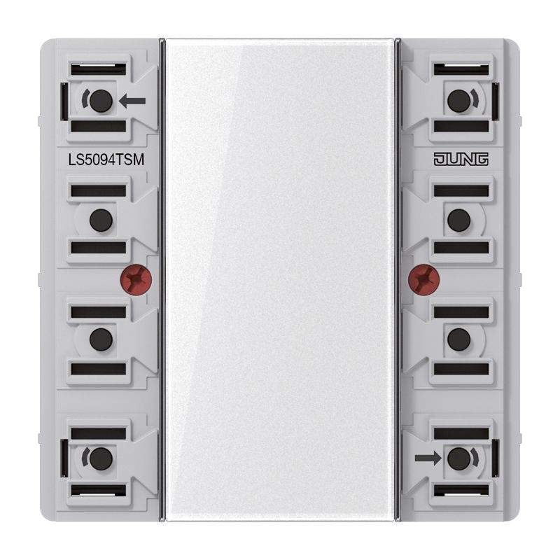 inklusive transparenter Abdeckung Art.-Nr.: LS 50 NA für Tastensatz 4fach, Art.-Nr.: ..504 TSA .. in der Serie LS erweiterbar mit einem Tastsensor-Erweiterungsmodul Art.-Nr.: LS 509.. TSEM ETS-Produktfamilie: Taster Produkttyp: Taster 4fach Bestimmungsgemäßer Gebrauch Bedienen von Verbrauchern, z.B. Licht ein/aus, Dimmen, Jalousien auf/ab, Helligkeitswerte, Temperaturen, Abrufen und Abspeichern von Lichtszenen etc. Montage in Gerätedose mit Abmessungen nach DIN 49073 Produkteigenschaften KNX Medium: TP 256 Tastsensor-Funktionen Schalten, Dimmen, Jalousiesteuerung, Wertgeber, Szenenaufruf etc. Eine oder zwei Funktionen pro Taste Komplettierung mit Tastensatz Beleuchtbares Beschriftungsfeld Eine Status-LED pro Taste rot, grün oder blau einstellbar Eine Betriebs-LED als Orientierungslicht sowie zur Anzeige des Programmierzustands rot, grün oder blau einstellbar Helligkeit von Status-LEDs, Betriebs-LED und Beschriftungsfeld einstellbar: im Betrieb umschaltbar, z.B. während der Nachtstunden Messung der Raumtemperatur Nebenstelle für Raumtemperaturregler Sperrfunktion: Sperren oder Funktionsumschaltung aller oder einzelner Tastenfunktionen Alarmfunktion, optional mit Quittierung durch Betätigung mit beliebiger Taste Energiesparmodus Integrierter Busankoppler Anschluss für ein Tastsensor-Erweiterungsmodul 1-4fach Inklusive transparentem Tastensatz zur Bedienung auf Baustelle ohne Designtasten KNX Data Secure kompatibel ab ETS 5.7.7 oder ab ETS 6.3.0