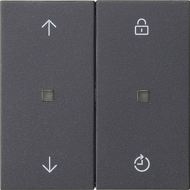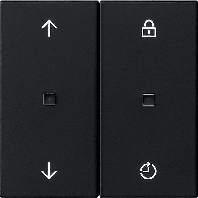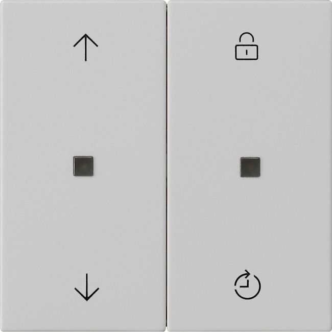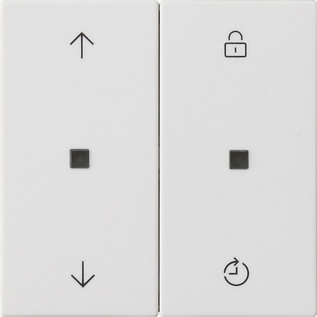 eNet Funk Bedienaufsatz Memory Pfeilsymbole Reinweiß glänzend System 55 Merkmale: Betrieb auf Schalt-, Dimm- oder Jalousieeinsatz oder Nebenstelleneinsatz 3-Draht des System 3000. Manuelles, funk- und zeitgesteuertes Bedienen von z. B. Jalousien, Rollläden, Markisen, Beleuchtung oder Lüftern. Sender zur Funkübertragung von Schalt-, Dimm- und Jalousiebefehlen. Nachtmodus einstellbar. Status- und Funktions-LED leuchten nicht dauerhaft. Statusrückmeldung an Funksender. Statusanzeige mit LED. Auswertung der Nebenstelleneingänge. Funktionen in Kombination mit Jalousieeinsatz: Positionierung von Behängen über Szenenaufruf. Position für Sonnenschutz und Dämmerung. Fahrzeit und Lüftungsposition des Behanges speicherbar. Funktionen in Kombination mit Lichteinsatz: Szenenbetrieb möglich. Einschalthelligkeit dauerhaft speicherbar bei Kombination mit Dimmeinsatz. Funktionen in Kombination mit 3-Draht-Nebenstelle: Spannungsversorgter eNet Sender. Steuerung von Beleuchtung. Steuerung von Beschattung. Mit eNet Server ab Version 2.3 einstellbar (abhängig vom Einsatz): Vollverschlüsselte Funkübertragung (AES-CCM). Nebenstellenauswertung deaktivieren. Bediensperren. Umsteuerzeit bei Jalousien, Rollläden und Markisen einstellbar. Laufrichtung invertierbar. Position für Sonnenschutz, Dämmerung, Aussperrschutz und Windalarm. Maximalhelligkeit, Minimalhelligkeit und Dimmgeschwindigkeit einstellbar. Funktion der Status-LED einstellbar als Status-LED / Betätigungsanzeige. Nachlaufzeit. Ein- bzw. Ausschaltverzögerung. Auf- bzw. Abdimmrampe. Abschaltvorwarnung. Dauer-Ein, Dauer-Aus. Hotelfunktion. Lichtregelung. Repeaterfunktion. Update der Gerätesoftware. Speichern einer Herauf- und Herunterfahrzeit bzw. einer Ein- und Ausschaltzeit. Im Memorybetrieb werden diese Schaltzeiten im 24-Stunden-Rhythmus wiederholt. Sperrfunktion sperrt die Nebenstellenbedienung, die Bedienung über Funk und deaktiviert den Memorybetrieb. Hinweise: Bei Verwendung eines Aufsatzes aus Metall und/oder eines Abdeckrahmen aus Metall kann es zu Reichweiteneinbußen kommen. Die Funkzulassung gilt für Staaten der EU