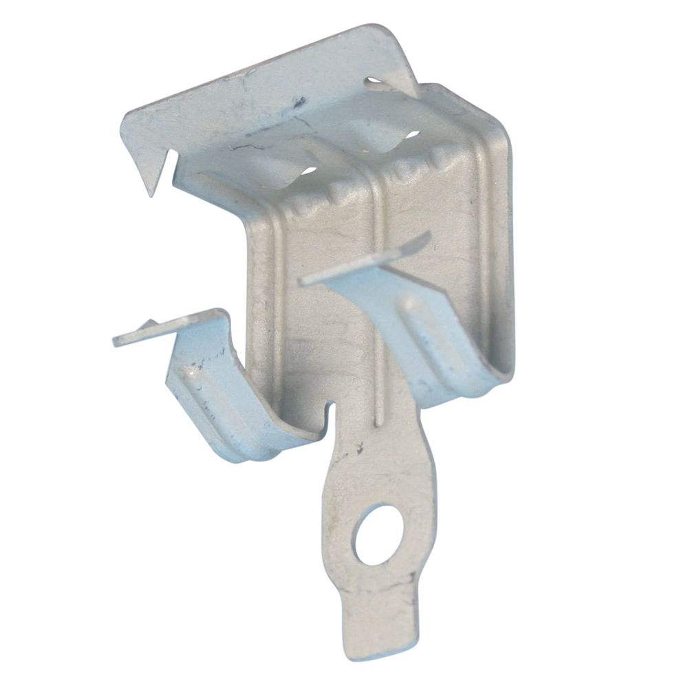 Befestigungselement zum Aufschlagen, zur Befestigung verschiedener Ketten- oder Drahtanwendungen an Stahlträgerelementen. Wird an 1420 mm Flanschen befestigt, mit 7,1 mm Bohrung für den Befestigungspunkt.