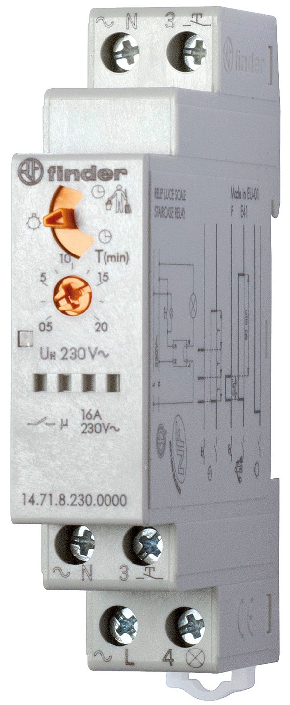 FINDER Treppenlichtzeitschalter REG 184-253VAC elektr.Multifunkt 3/4Leiter 230V/AC 1TE