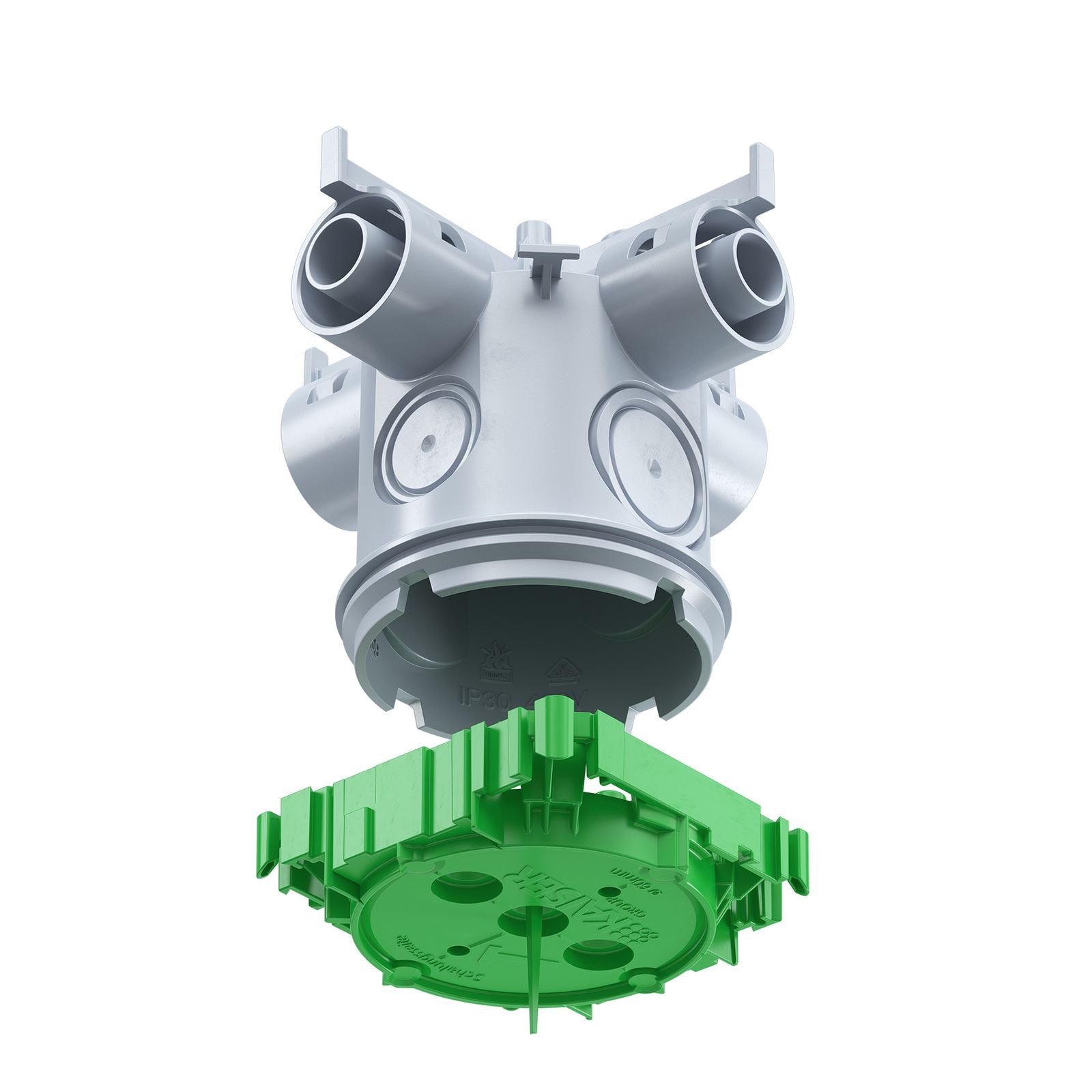 Decken-Verbindungsdose (1245-62). Universeller Decken- und Wandauslass mit KSK-Technik für die besonders schnelle und sichere Installation. Die universelle Anschraubfläche von Ø 85 mm ermöglicht die saubere Montage von Leuchten, Rauchmeldern etc. ohne zu Bohren. Anwendungsgebiet: Für Leitungsauslässe | Installationsart: Ortbeton | Tiefe: 99 mm | Auslassöffnung Ø: 35 mm