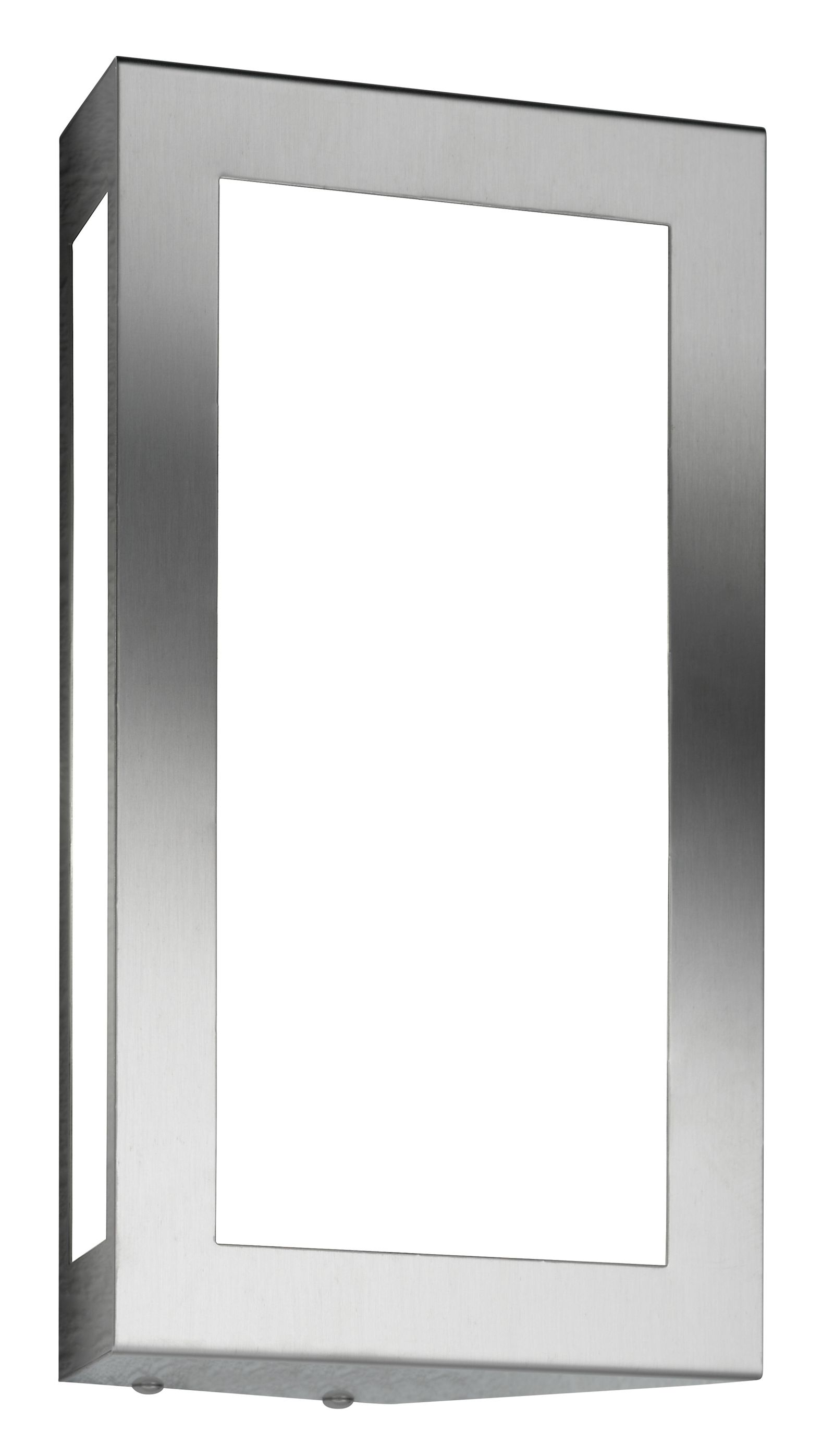 Das Produkt ist in Edelstahl und wahlweise auch in anthrazit pulverbeschichtet lieferbar in Kombination mit weißem Opalglas. Schutzart IP44. Anmerkung: Durch die nach hinten abgeschrägten Seiten entsteht eine indirekte Beleuchtung.