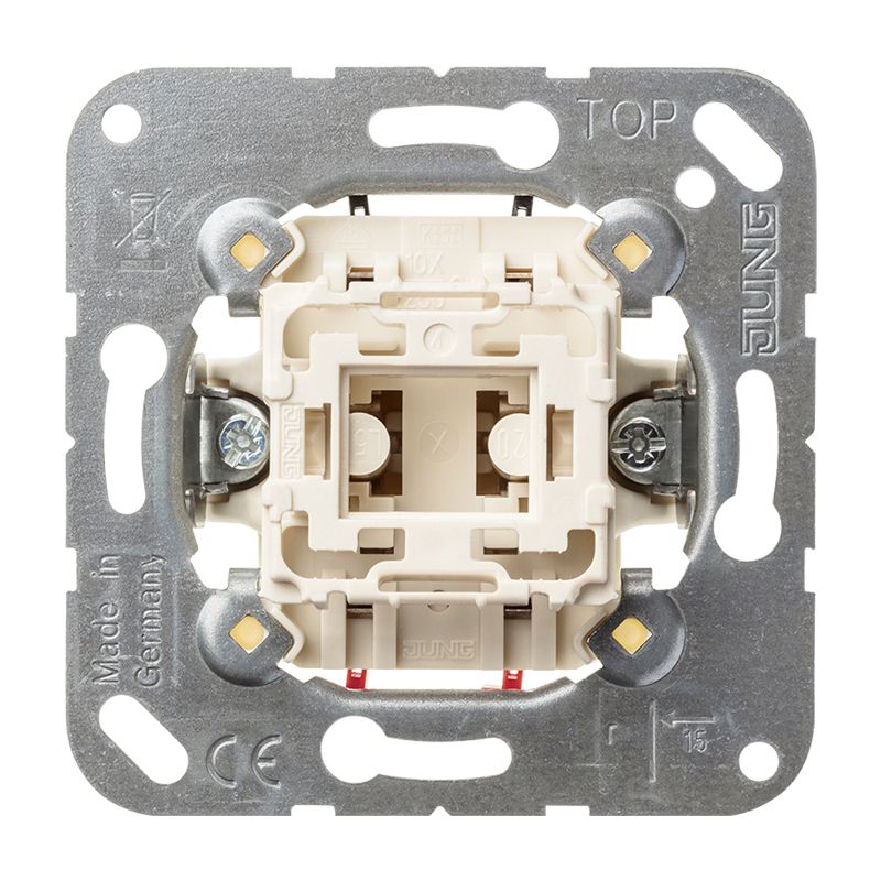 mit Federklemmen für starre Leiter bis 2,5 mm2 Verbindungsklemmen nach DIN VDE 0632 (EN 60669) Schalter in AUS-Stellung beleuchtbar durch Lampe Art.-Nrn.: 90 bzw. 95 (230 V), 96-.. (Kleinspannung) bzw. LED-Lampe Art.-Nr.: 90-LED.. (230 V) bzw. 961248 LED.. (Kleinspannung).